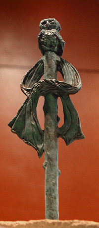 Ce bâton était pour Euclide à la fois un sceptre, une règle, une métaphore, un doigt, un crayon pour tracer des figures dans le sable, et sans doute aussi un bâton à usage coercitif. Le bâton d’Euclide était pour tous le symbole du savoir qu’on transmet. Du reste, les plus anciens d’entre vous se souviennent peut-être que dans leur enfance, les enseignants des petites classes manipulaient de semblables objets, en l’espèce de longues baguettes à section carrée, aux multiples et redoutables usages.